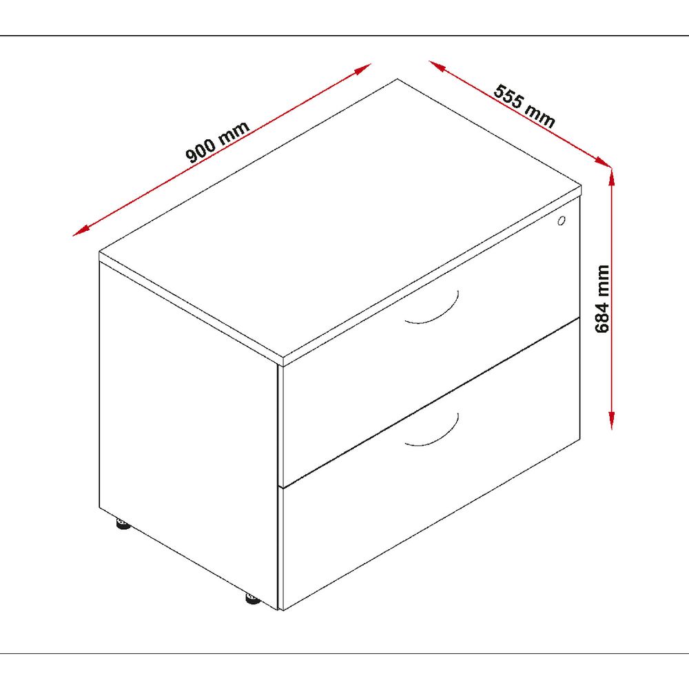 - Once assembled, this cabinet measures 900 W x 555 D x 684 H mm.