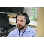 - It's got a boom mic with flip to mute function and Environmental Noise Cancellation (ENC) to assure quality calls and teleconferencing.