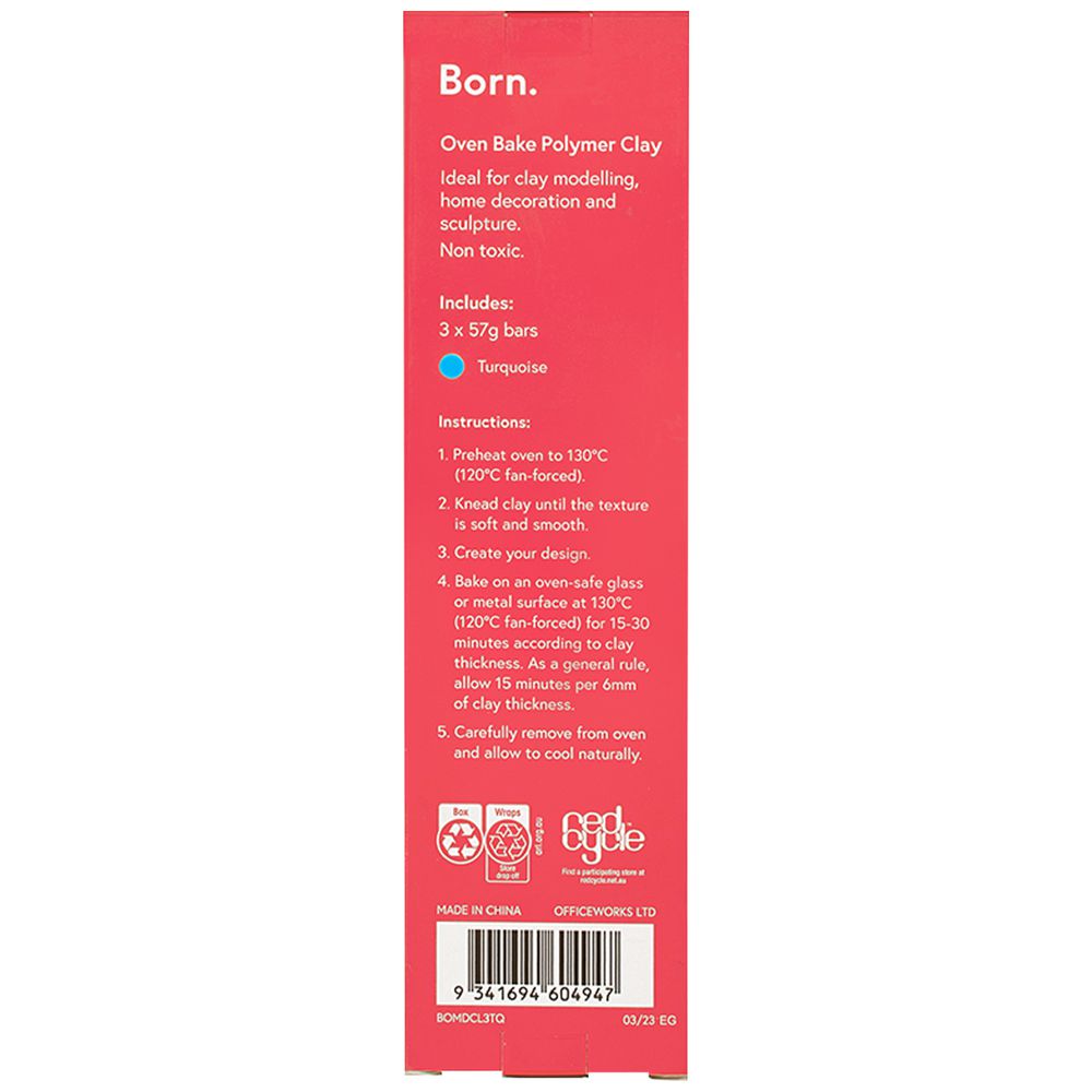 Born Oven Bake Polymer Clay is ideal for jewellery design, home decoration and sculpting. It's non-toxic for safe use, as well as blendable, soft and pliable to suit your creative needs. This pack comes with 3 sticks of clay for you to explore your wildest modelling dreams with; simply oven-bake at 130°C for 15 minutes to set your creation.