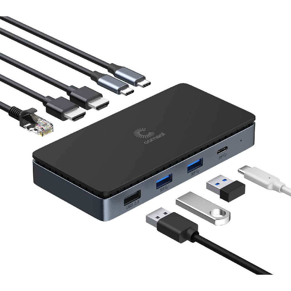 - This adapter supports connections via 2 x HDMI monitor ports, 2 x USB-A 3.0 data ports (5Gbps), 1 x USB-C 3.1 data port (5Gbps), 1 x USB-A 2.0 data port, 1 x RJ45 Gigabit Ethernet network port and 1 x USB-C female port for up to 87W of power pass.