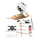 - This kit includes everything you'll need to create your own pirate ship including a wood ship body, sail, paintbrush, marker, yarn and 4 acrylic paints (red, white, black and silver).