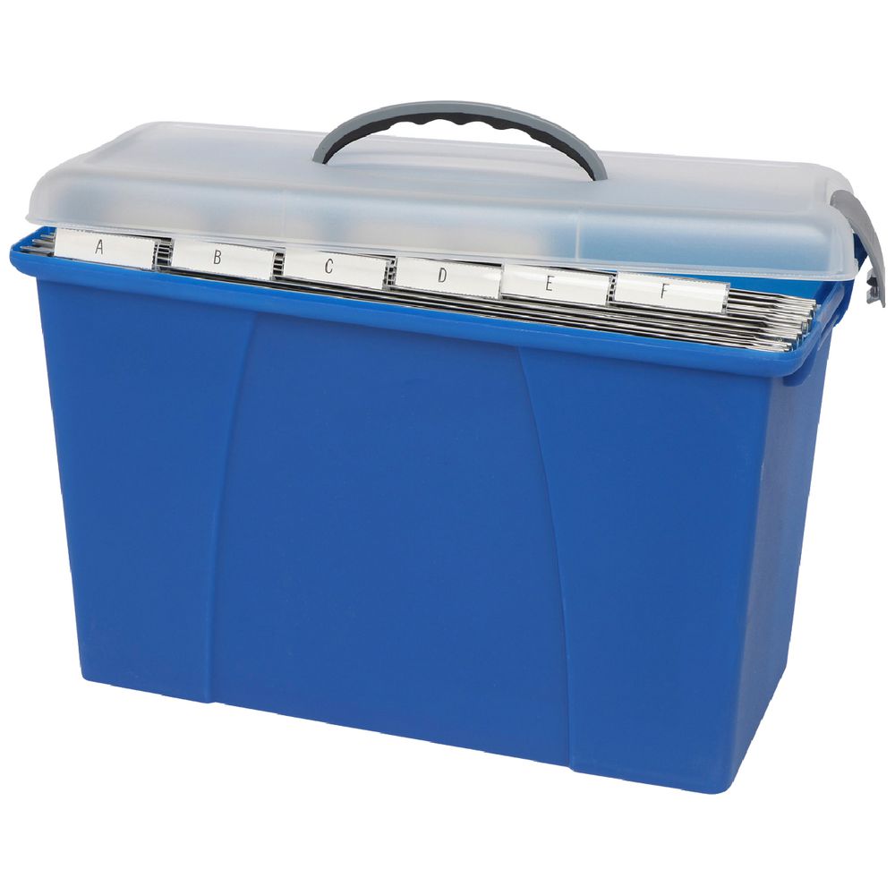 - It has a clear lid so you can see what's inside and a blue base so you can colour code your files.