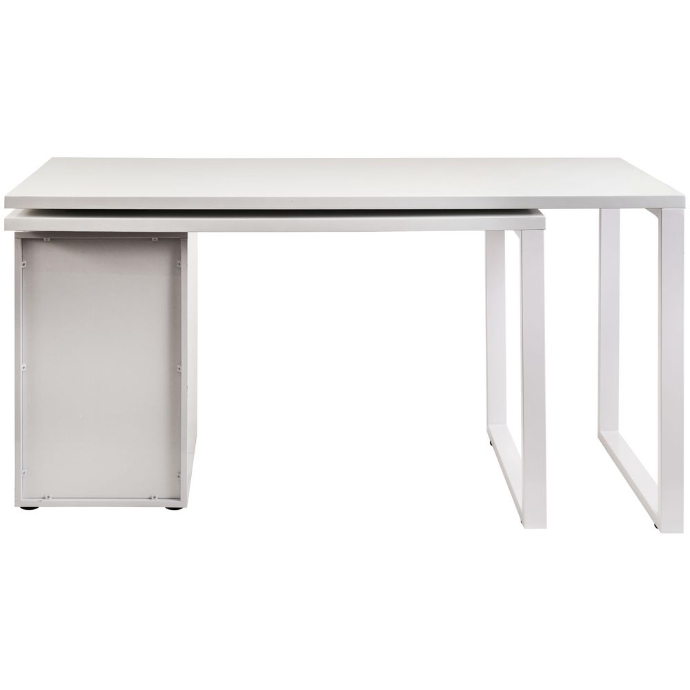 The Drammen Rotating Workstation lets you easily adjust your setup for a comfortable working experience. This corner workstation has two desktops that can rotate 360 degrees and includes a stationery cabinet with 2 drawers and 1 filing drawer. Its glossy white finish and powder-coated steel construction fit right in with any office or study.