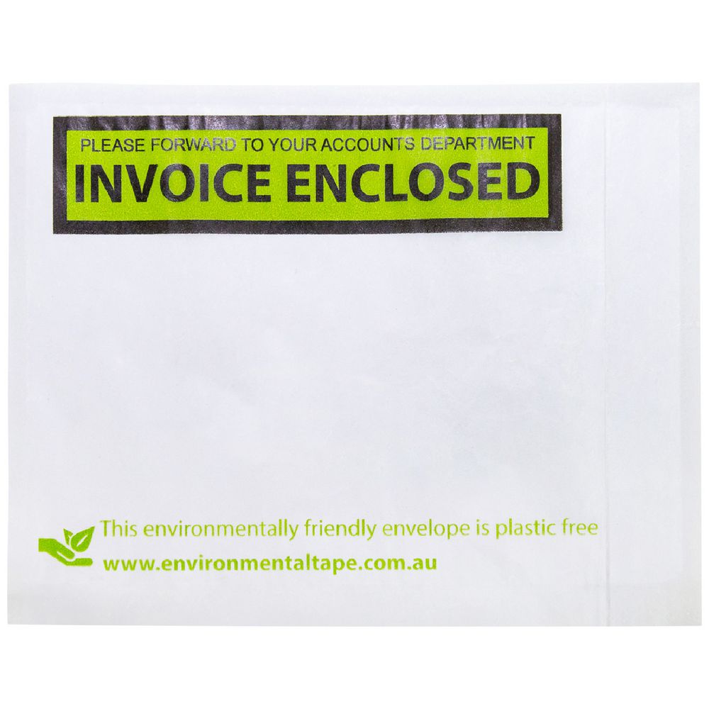 - Each ecolope is printed with "Invoice Enclosed" in a white and green design.