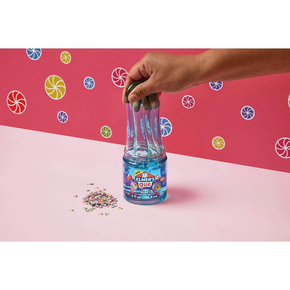 This Elmer’s Gue Candy Blast adds a blast of sweet fun that’s ready to play with right out of the container. This clear blue slime comes with Sugary Swirl mix-ins and a sweet, blue raspberry scent that add a whole new dimension of play. It’s made using a safe, non-toxic formula that’s great for kits to stretch, squish, twist and play.