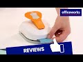 - Simply insert your paper into the large slot and depress the lever to punch a classic tag shape.