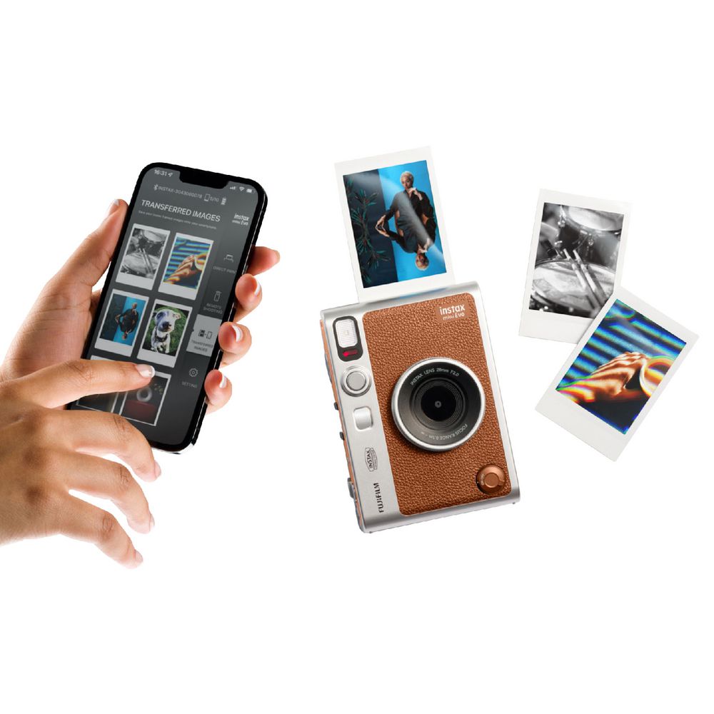 Spark imagination with the Instax Mini Evo Instant Camera. With 10 lens effects, 10 film effects and over 100 ways to express your yourself, have fun experimenting with vividness, go retro, add softness to the focus or lose the colour - the perfect shot at your fingertips. When you're ready to print, simply pull the lever to the right for an analog-style photo experience.