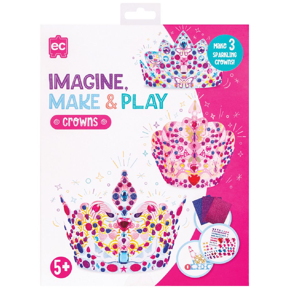 Create beautiful crowns with this gorgeous set. Follow the simple instructions to customise and design three unique crowns with glittery stickers and sparkly gems. Let your creativity soar as you imagine, make and play!