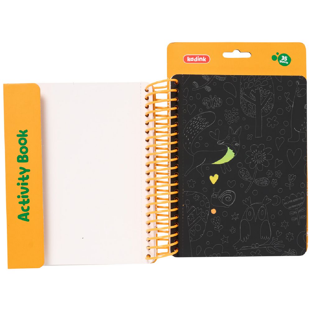 This Kadink Activity Book is a great way to pass the time with creative, colourful fun. It features a paint brush, scraping stick, 4 pigment block sheets, 2 sticker sheets, a stencil, 10 scratch papers, 12 single-page colouring papers and 6 blank scene papers.