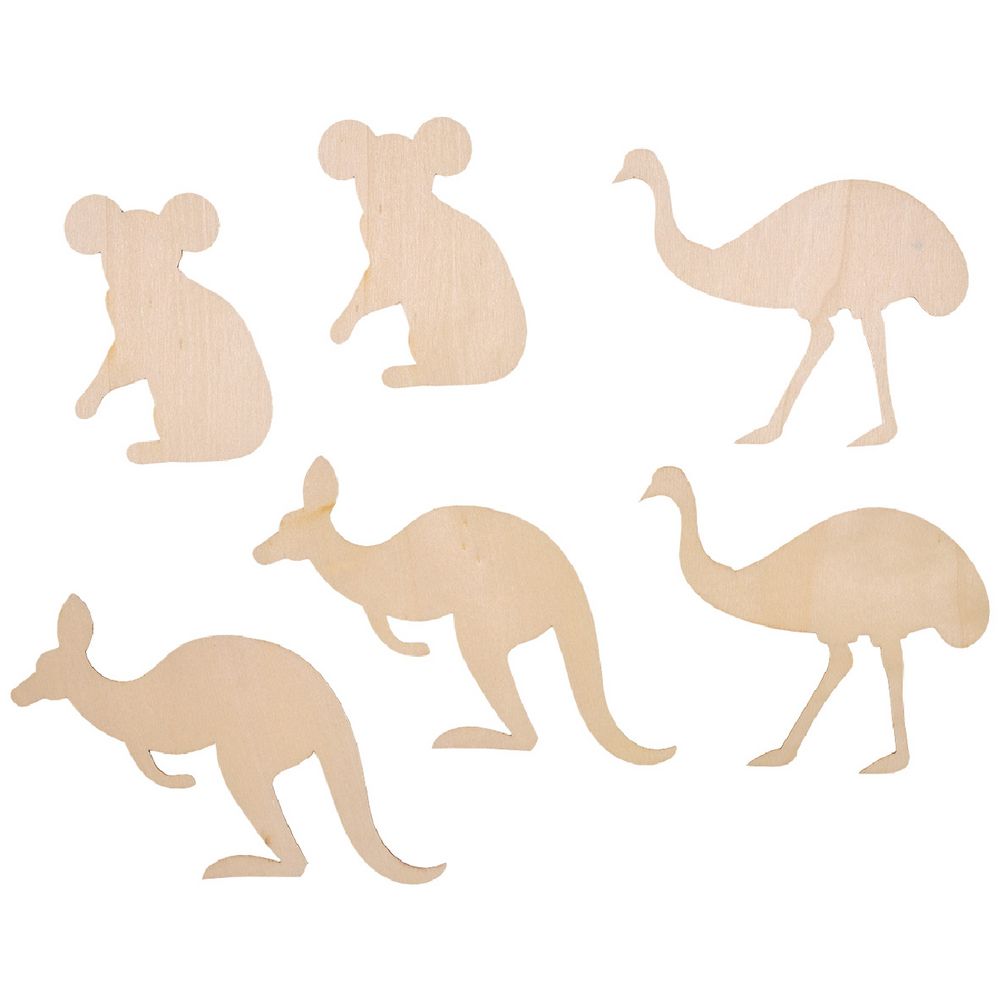 - This pack comes with 6 different wooden animal shapes for you to decorate or play with.