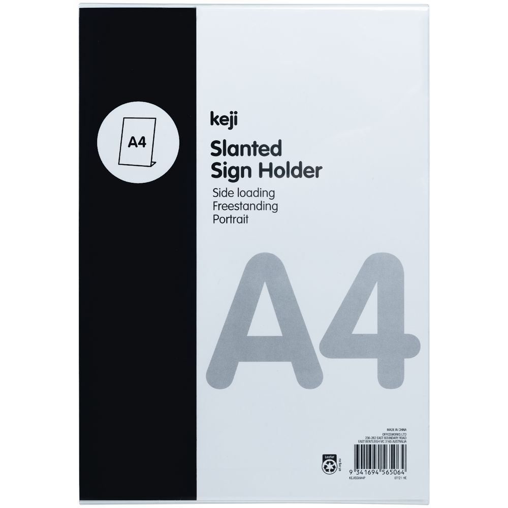 The Keji A4 Slanted Sign Holder is the perfect way to professionally present and display your A4 marketing or communication signage. It has a durable construction and will help to protect your posters and information against everyday wear and tear.