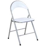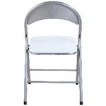 • This folding chair has a padded seat and a sturdy silver steel frame.