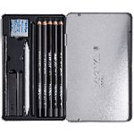 This set contains a charcoal stick, carbon soft pencil, carbon hard pencil, charcoal soft pencil, charcoal medium pencil, charcoal hard pencil, a 7 x 7 mm charcoal stick, a 7 x 14 mm charcoal stick, charcoal lead, a kneadable eraser and a pencil sharpener. Packaging may vary.