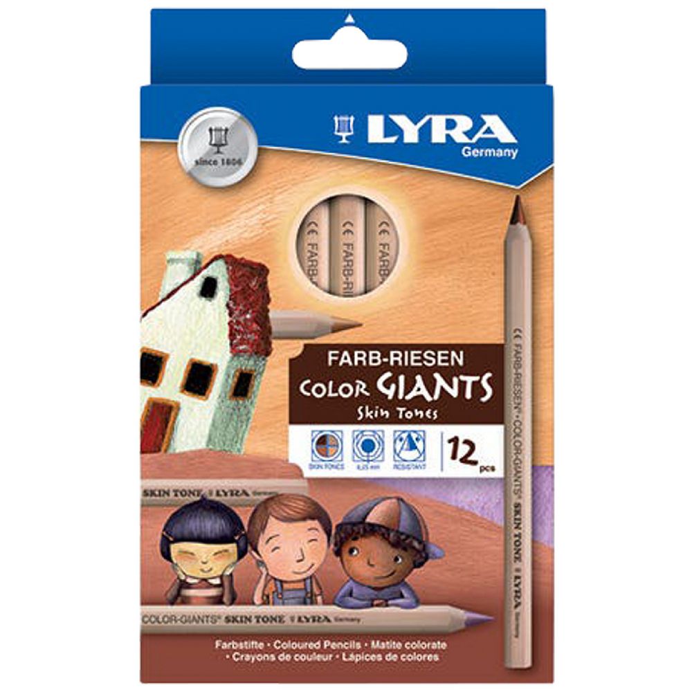 These Lyra Coloured Giants Portrait Pencils have an extra strong pigment and thick, 6.25mm nib to create bold lines on your page. The smooth texture makes them a pleasure to use, and the break resistant lead ensures consistent drawing and colouring. Featuring and assortment of smudge and waterproof skin tone colours, this set is great for all kinds of artists.