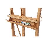 - This easel features a shelf for storage of brushes, paints, and mediums.