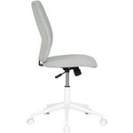- This chair has a stylish, white base and is upholstered in a fabric that is grey with a light green tint.
