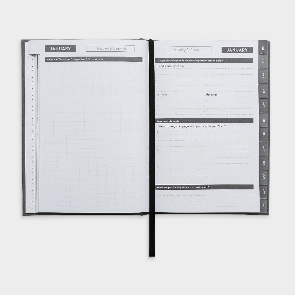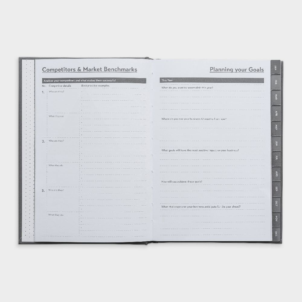 Take a look inside this planner by clicking here This Otto Undated Planner is a great tool for making goals around business. It is undated so you can start using it anytime, while the attached ribbon allows you to not lose your page.