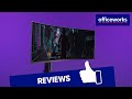 - 49" OLED display with a 5120 x 1440 DQHD resolution.