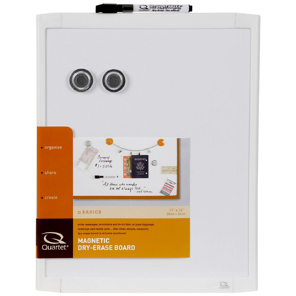 Use this Quartet Basic Frame Whiteboard to write messages, set reminders, write to-do lists or to post clippings or family photos. This whiteboard can be mounted on a wall making it easy for everyone to see and use. This modern dry-erase board can be used to create and share ideas as well as to organise your daily life.