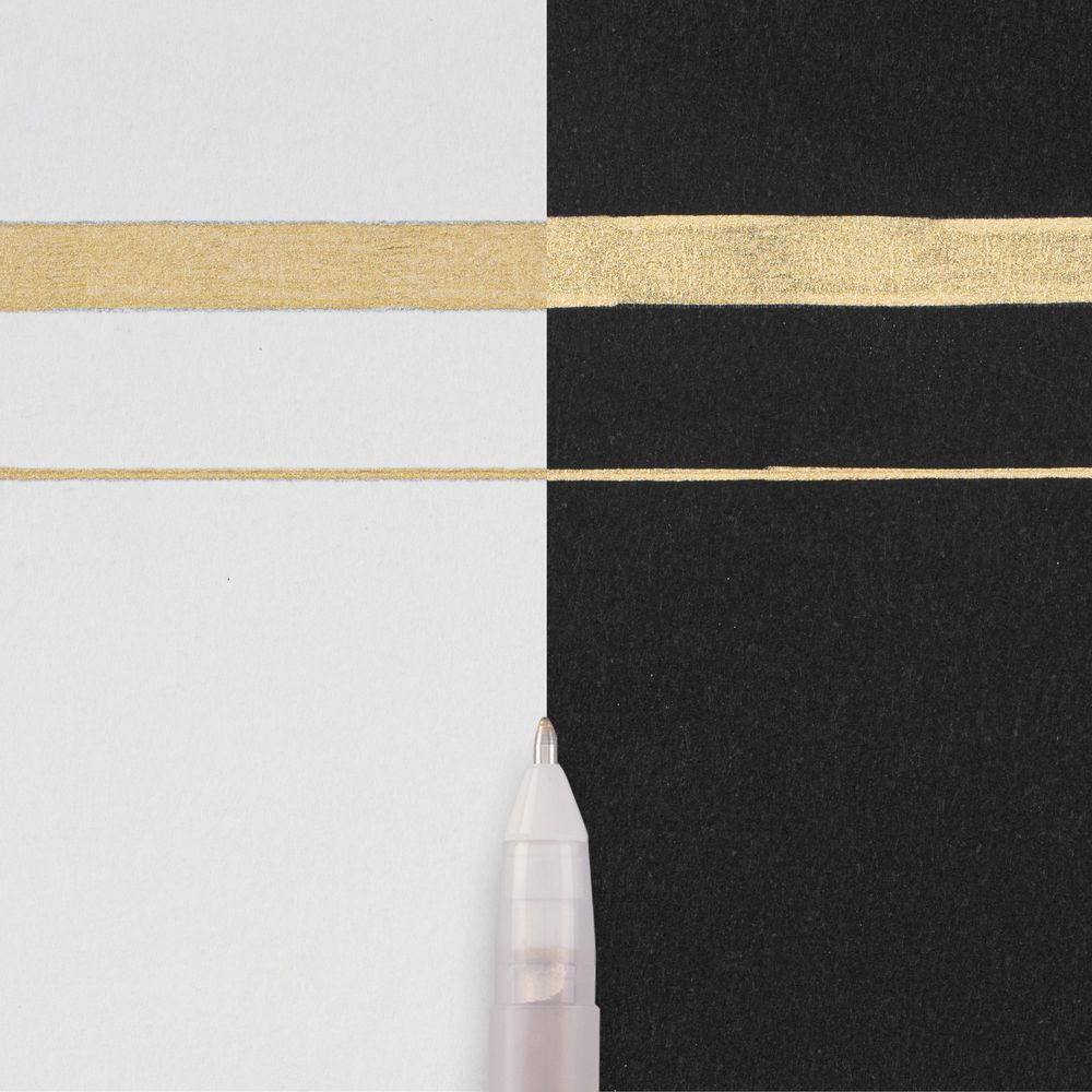 This Sakura Gelly Roll Pen offers a superior writing experience, with smooth flowing performance and archival-quality ink. The opacity of the ink ensures that it can stand out on dark paper colours as well as light paper. The reflective metallic tone adds a special touch to journals, note-taking, cards, lettering, and even your mindful colouring-in practice.