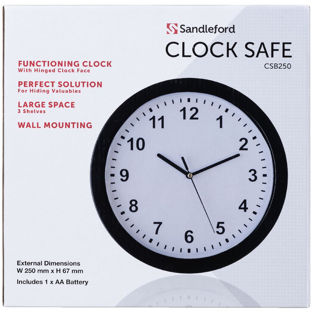 This Sandleford Clock Safe is the ideal way to protect smaller valuables like jewellery. It features a functioning clock outer with a hidden safe inside. The safe has 3 shelves so you can make use of the space, while the clock comes with fixings so you can easily mount it on your wall.