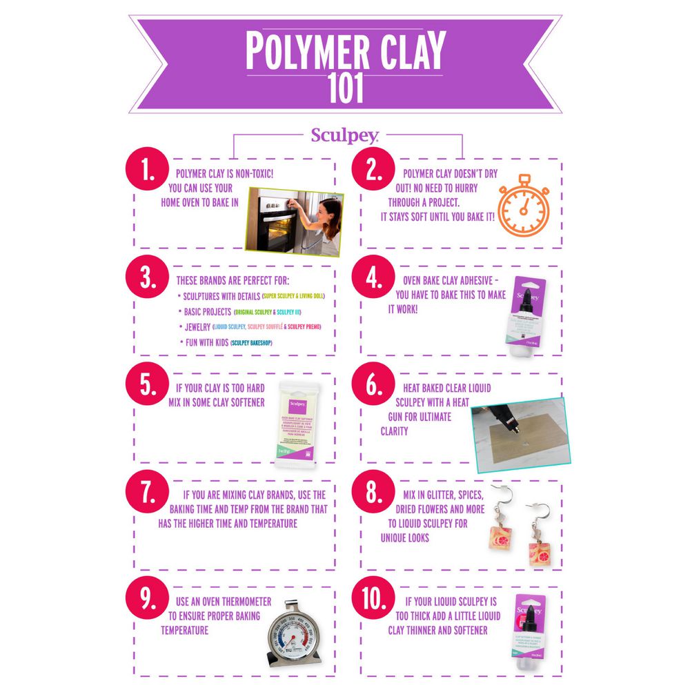 - Bake the clay at 130 degrees Celsius for 15 minutes per 6 mm thickness.