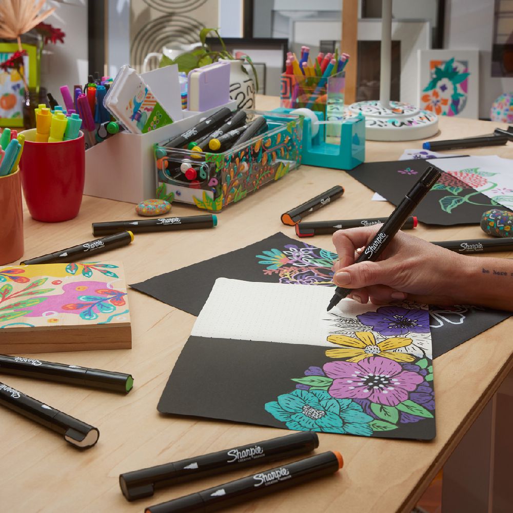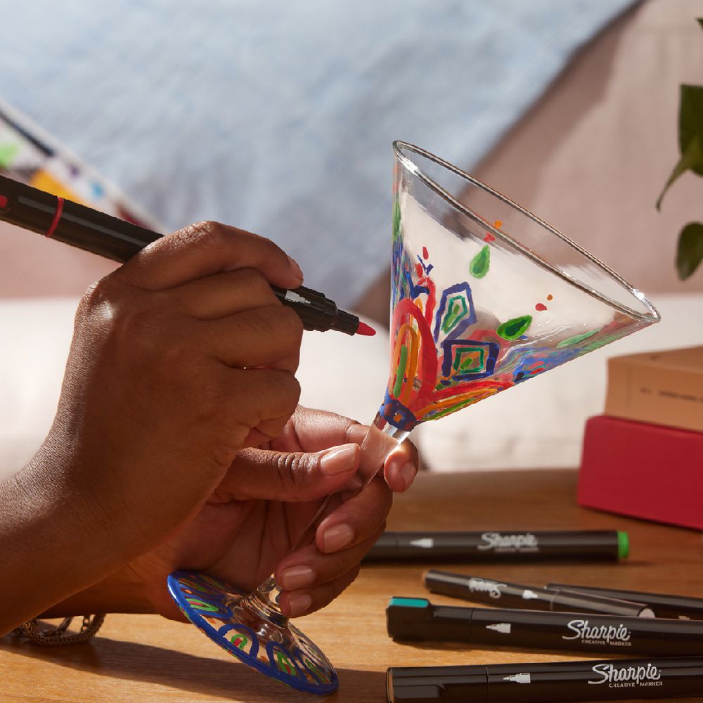 These Sharpie Creative Markers are the perfect way to bring your creative vision to life. These acrylic markers feature stunning paint-like ink that glides across the page with the control of a marker, but use a water-based formula that won't bleed through paper so your work stays clean. The bright colour markers create vibrant marks on light and dark surfaces and boldly mark on paper, metal, wood, ceramic, glass, rock, and canvas. The colours beautifully layer to add dimension to your work.