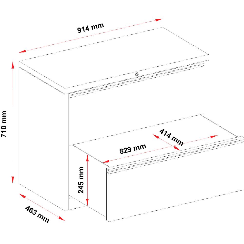- Its fully assembled dimensions are 915 W x 463 D x 710 H mm