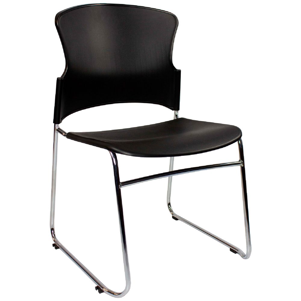 Try the contoured seat of the Adam Stacking Chair for increased comfort and less stress on your legs. The chair has a stylish and durable sled base with a chrome frame, making it a durable option to keep handy for events and meetings. You can stack these chairs up to 14 high so they're easy to pack away and store between uses.