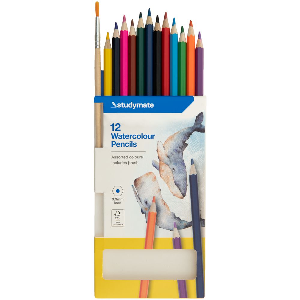 These Studymate Watercolour Pencils come in a pack of 12 with assorted colours. Each pencil has a hexagonal design that is ideal for a firm and stable grip, while the 3.3 mm-sized lead is highly pigmented for bright and vivid colour laydown. This pack also comes with a brush so you can start creating right away.