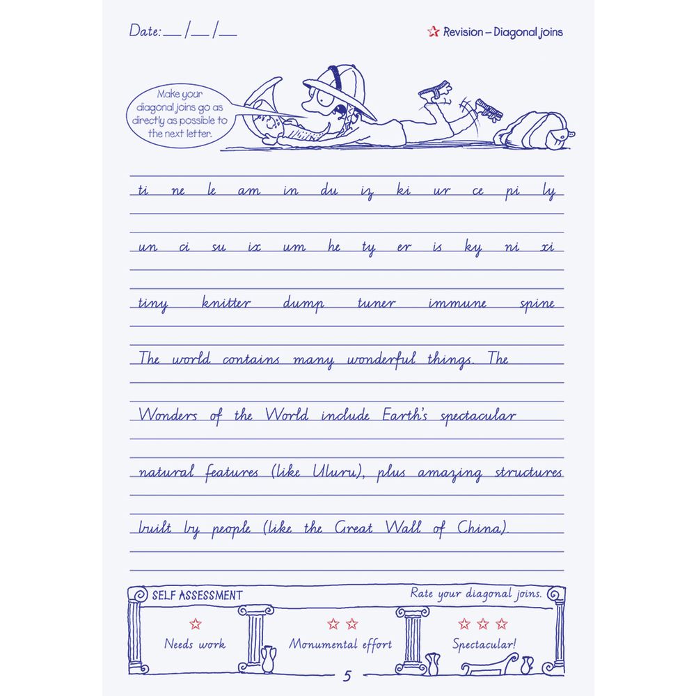 Free downloadable Teacher Resource available. Click the link below the Features section to download the PDF. This Victorian Targeting Handwriting Student Book 6 is designed to combine all the previous lessons and to strengthen the overall result of the students writing. This book is full of activities that provides practice for complete sentences, punctuation and legible writing. The fun explorational characters are featured on most pages and makes learning about handwriting more engaging.